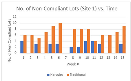 Traditional controls were non-compliant 3x more often than Hercules Eco Block™. Non-compliance for Eco Block™ typically meant simple repositioning, while silt fence or wattle often required full replacement.