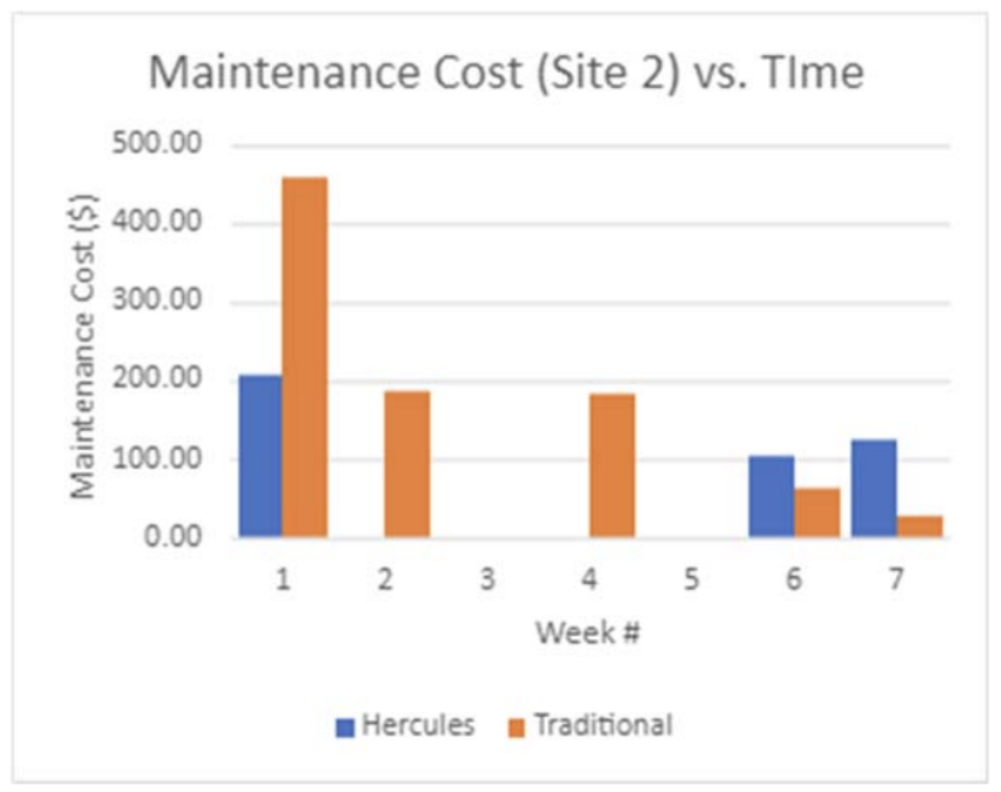 Traditional controls had 2.1x higher maintenance costs than Hercules Eco Block™, confirming measurable cost savings through reuse and durability.